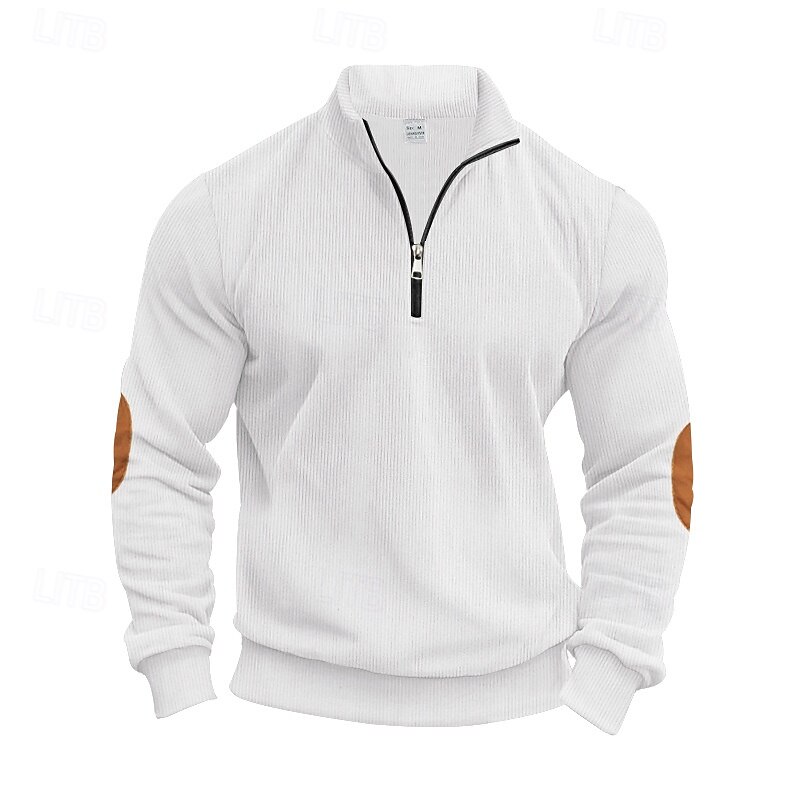 More information about Men's Sweatshirt Quarter Zip Sweatshirt Apricot Black White Army Green Navy Blue Half Zip Color Block Patchwork Sports & Outdoor Daily Holiday Polyester Corduroy Streetwear Basic Casual Spring Fall