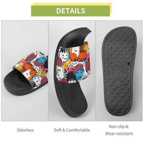 Cartoon Faces Hand-Drawn Graffiti Slippers for Men Wormen Shower Bathroom Slipper Indoor Beach Non Slip Sandal 4