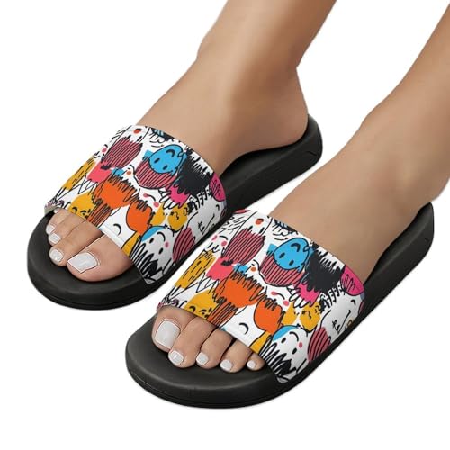 Cartoon Faces Hand-Drawn Graffiti Slippers for Men Wormen Shower Bathroom Slipper Indoor Beach Non Slip Sandal 7
