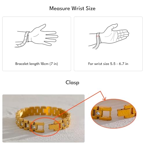 • [Perfect Fit for Everyday Elegance] Sleek gold jewelry for women, designed in a trendy watchband style (18 cm length, 10 mm width) to fit wrists 5.7"–6.7". Perfect for adding timeless elegance to women’s jewelry collections, this versatile fashion accessory elevate casual or formal looks.
