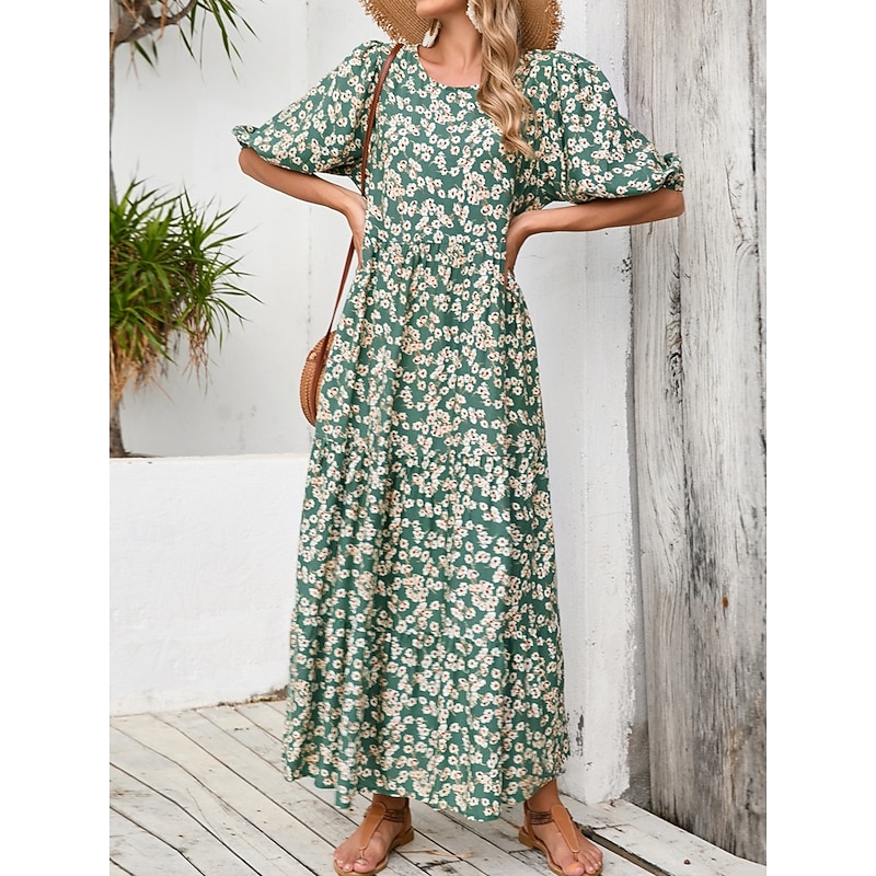 HOT ! Women's Maxi Dress Casual Dress Swing Dress Boho Chic Dresses Bohemia Cute Stylish Vacation Daily Beach Loose Fit Graphic Ditsy Floral Half Sleeve Crew Neck Green Summer Spring Fall