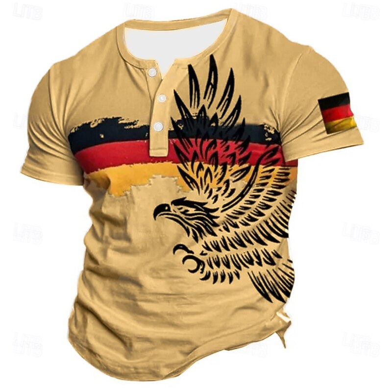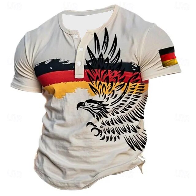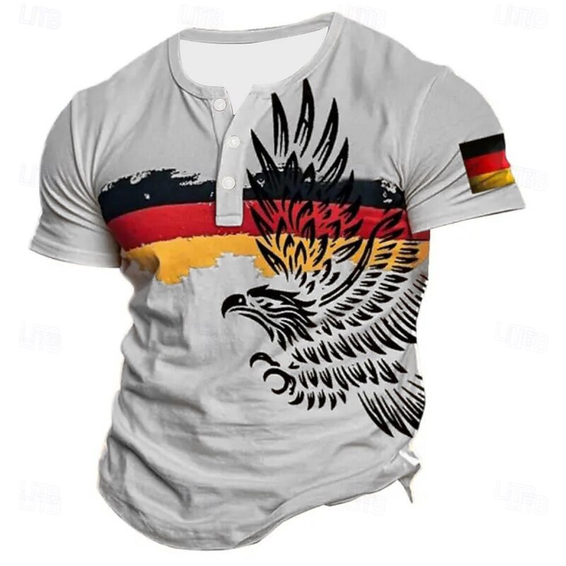HOT ! Men's Flag Eagle GERMANY T Shirt Henley Shirt Short Sleeve Designer Retro Vintage Casual Street Casual Daily Summer Spring All Seasons Light Pink White Yellow Light Green Light Grey Henley Henley