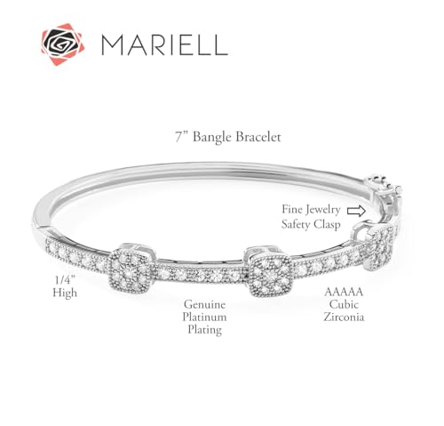 • LUXURY STYLE: Mariell Luxurious Vintage CZ Bangle Bracelet for Brides or Formal Affairs, Features Luxurious Hinged Clasp and Safety Closure Using Found on Diamond Bracelets, measures 7" by 1/4" w, Rich Looking Heirloom Styling, Elegant Gatsby-Inspired Bangle for Bridal, Wedding or Special Occasion Bangle