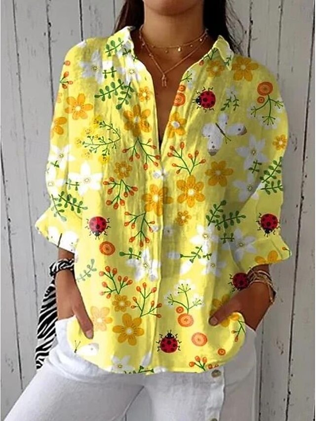 HOT ! Women's Linen Like Shirt Floral Graphic Stylish Casual Regular Tops Daily Holiday Going out s Yellow Red Blue Green Spring
