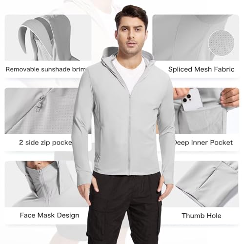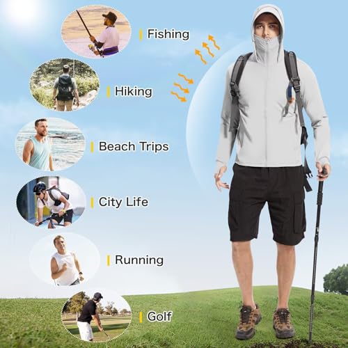 • 【 Detachable Hood + Multi-Use Protection 】- The mens sun hoodie features a detachable anti-UV hood to shield your neck and ears during hikes. Zip it off instantly for golf or casual wear, with a windproof drawcord for secure fit