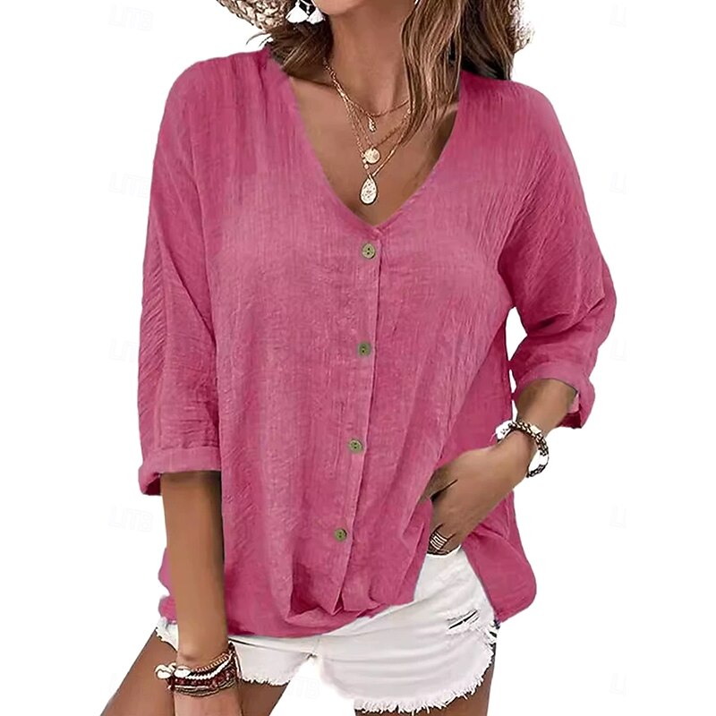 More information about Women's Shirt Button Down Blouse Blouse Solid Color Plain Bohemia Daily Stylish 3/4 Length Sleeve V Neck Regular Tops Daily Holiday Going out Buttons Sage Green Blue Khaki Rose Pink Summer Spring