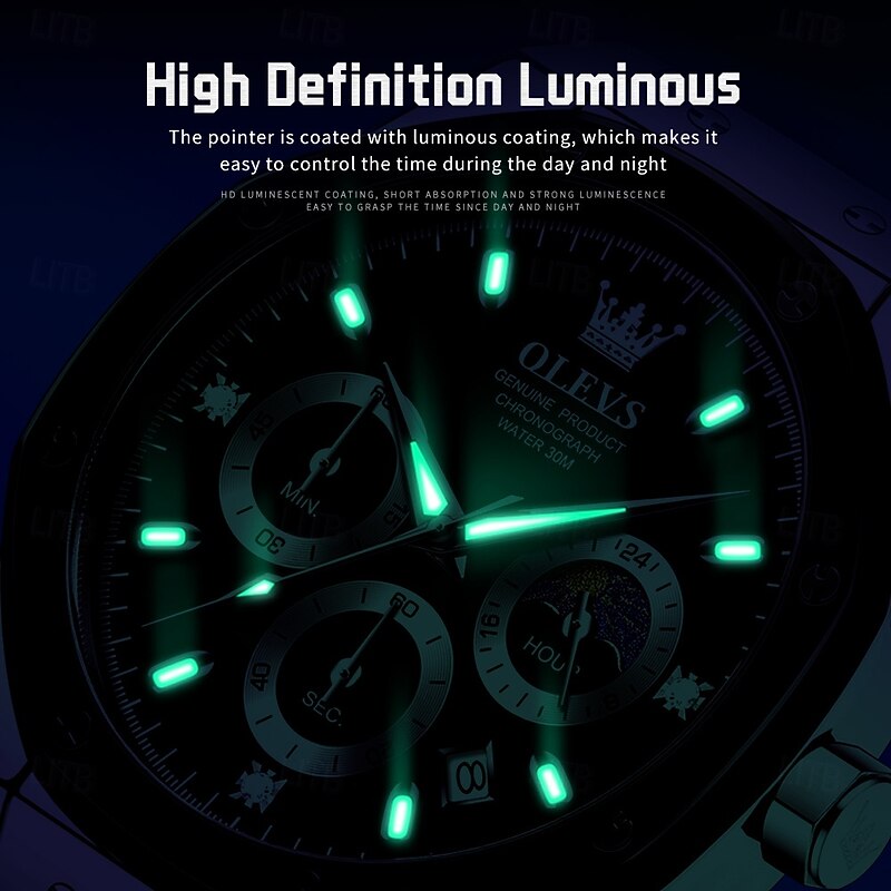 More information about OLEVS 9911 Men's Watches Silicone Strap Waterproof Moon Phase Chronograph Man Watch Luxury Multifunctional Quartz Watch