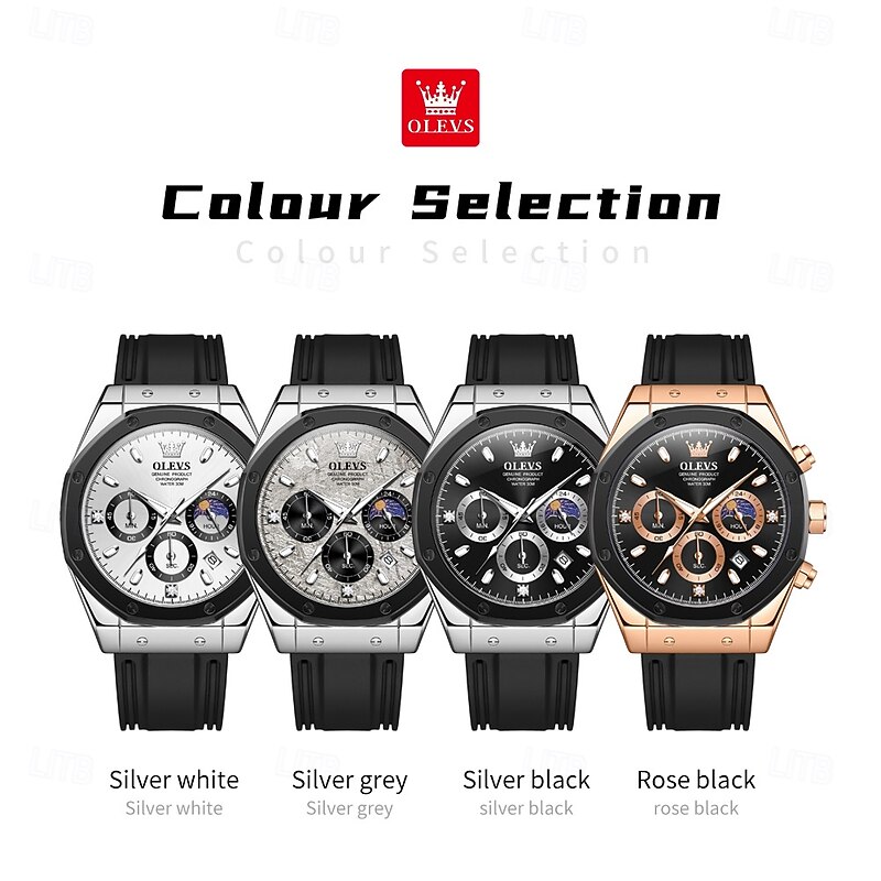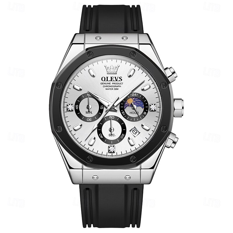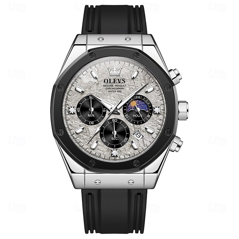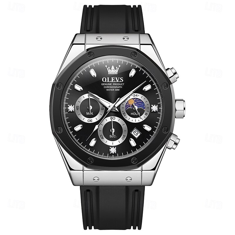 $31.99 - OLEVS 9911 Men's Watches Silicone Strap Waterproof Moon Phase Chronograph Man Watch Luxury Multifunctional Quartz Watch 2025. Shop for cheap Quartz Watches online? Buy at lightinthebox.com on sale today!