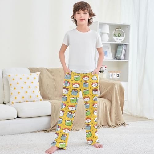 Boy's Lounge Pants Cute Funny Sushi Kids Jogger Pants Elastic Waist Long Bottoms with Pockets 6-14 Years 4