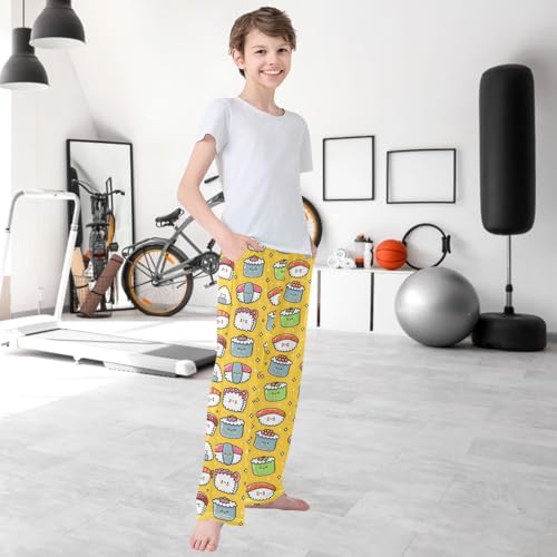 Boy's Lounge Pants Cute Funny Sushi Kids Jogger Pants Elastic Waist Long Bottoms with Pockets 6-14 Years 7