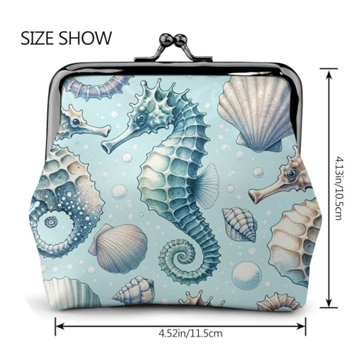 Pu Leather Buckle Coin Purse Watercolor-Seahorse-Seashells Girls Kiss-Lock Change Purse Wallets 1