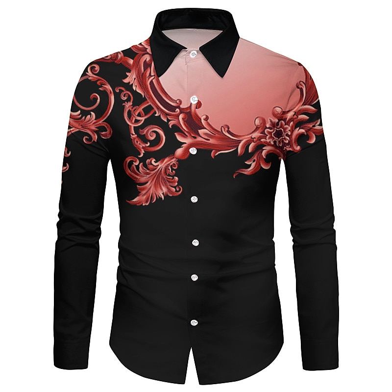 Men's Floral Shirt Button Up Shirt Long Sleeve Fashion Casual Breathable Street Casual Daily Spring & Summer Collar 3D Print Button-Down Black Red Blue Purple 10