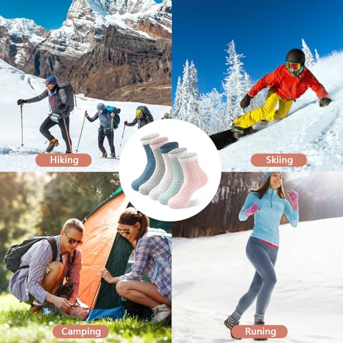 Lisacool 5 Pairs Womens Wool Socks - Winter Warm Socks - Thick Thermal Knit Vintage Cozy Crew Soft Gifts for Women 4