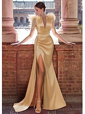 More information about Mermaid Evening Gown Elegant Dress Formal Sweep / Brush Train Sleeveless V NeckDress Satin with Feather