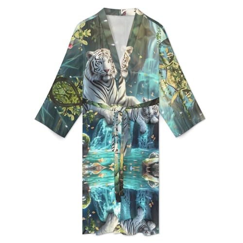 More information about White Tiger Waterfalls Funny Men's Robe Soft Lightweight Bathrobe Long-sleeve Spa Robes