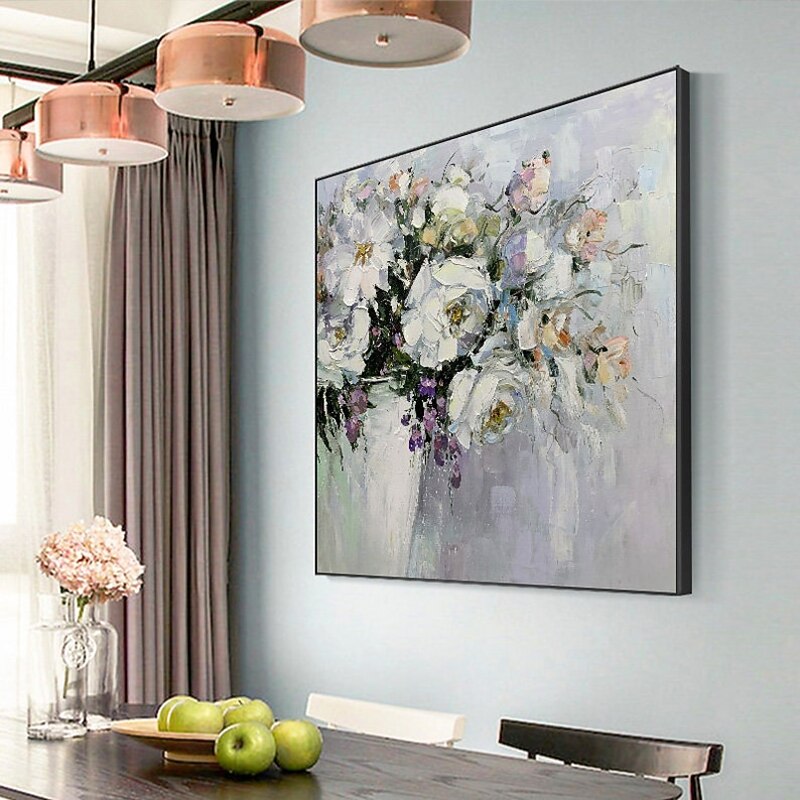 More information about Handmade Oil Painting Canvas Wall Art Decoration Abstract Floral Painting White Peonies for Home Decor Rolled Frameless Unstretched Painting