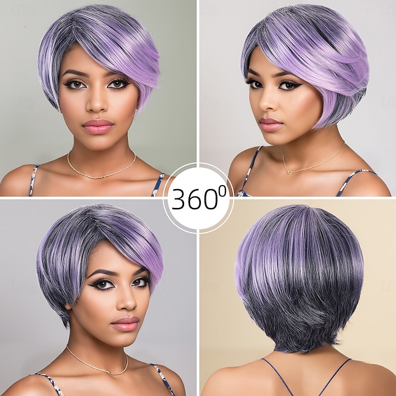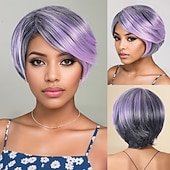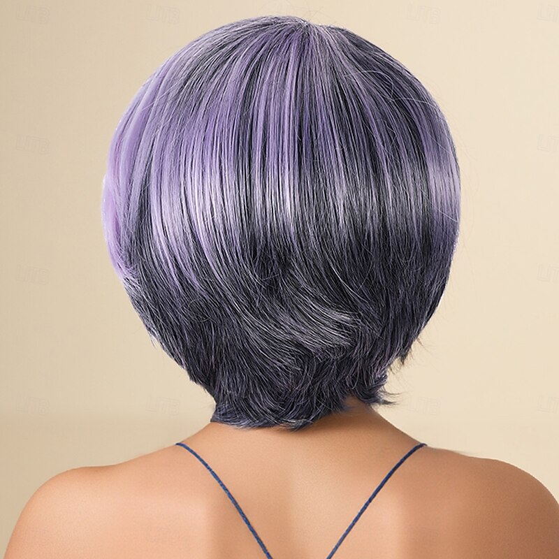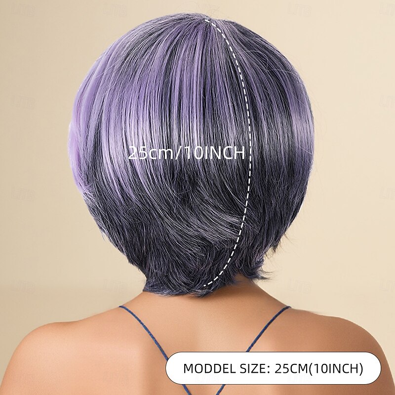 More information about Synthetic Wig kinky Straight Natural Straight Layered Haircut Asymmetrical Machine Made Wig 10 inch A1 Synthetic Hair Women's Classic Color Gradient Highlighted / Balayage Hair Multi-color