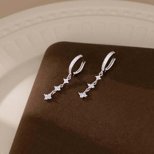 HOT ! Reffeer Solid 925 Sterling Silver CZ Star Chain Dangle Earrings for Women Teen Girls Chain Drop Hoop Earrings