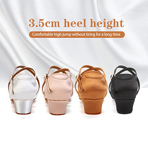 YKXLM Silk Fabric Brown Latin Dance Shoes for Girls Latin Ballroom Dance Shoes Girls with Diamond Buckle,Model US-TL-LP1202-ZSZK, 6.5 M Little Kid 5