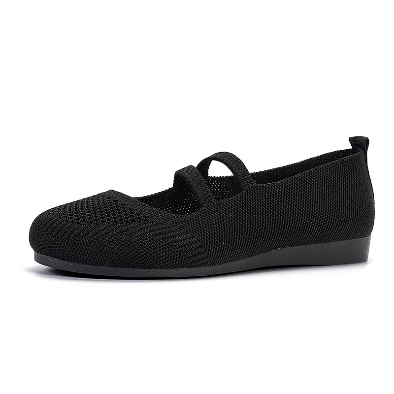 Women's Black Breathable Knit Ballet Flats – Comfortable Slip-On Shoes for Casual & Work Wear 18