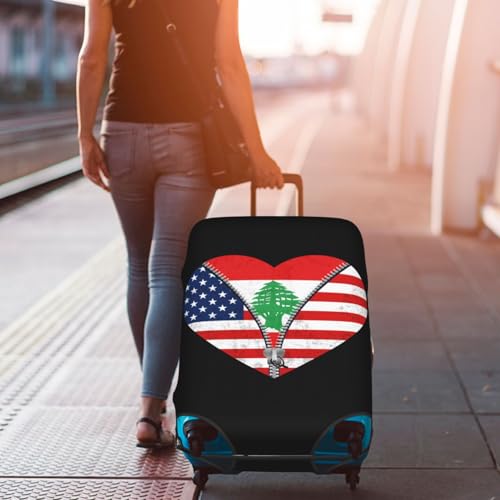Travel Luggage Cover Heart America Flag And Lebanese Flag Fashion Washable Baggage Suitcase Protector Fit For Luggage Small 7