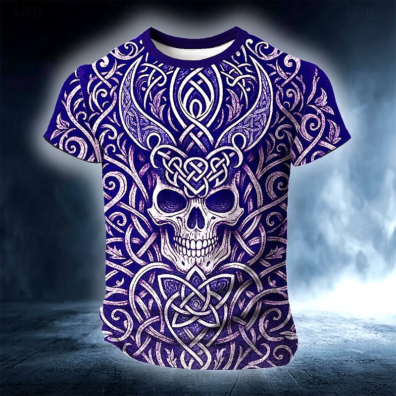 More information about Men's Skull 3D Celtics T Shirt Short Sleeve T shirt 3D Print Crew Neck Round Neck Shirt Viking Designer Party Street Casual Blue Purple Green Summer Spring Clothing Apparel S M L XL XXL XXXL