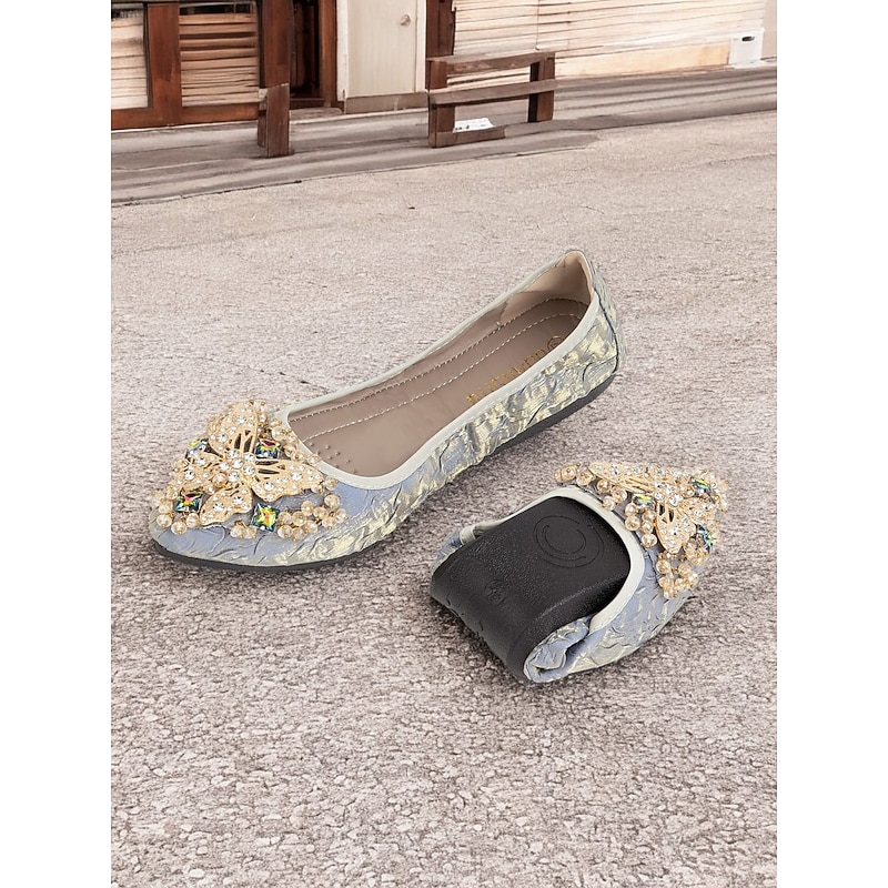 More information about Women's Foldable Embroidered Ballet Flats with Beaded Butterfly Design - Comfortable and Stylish Wedding Shoes