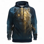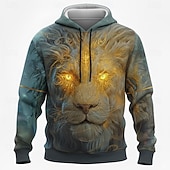 HOT ! Men's Lion Hoodie Sweatshirt 3D Fantasy Crew Neck Gift Club Streetwear Black Blue Drawstring Fall Winter Designer