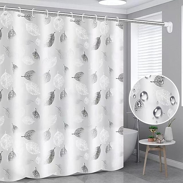 Shower Curtain 180cm 70",Watercolor Shower Curtain Set, Polyester Waterproof Shower Curtain, Non-slip Floor Mat, Toilet Seat, Bathroom Mat&12 Plastic Hooks, for Bathroom Bathtub Decoration 12