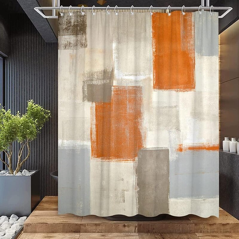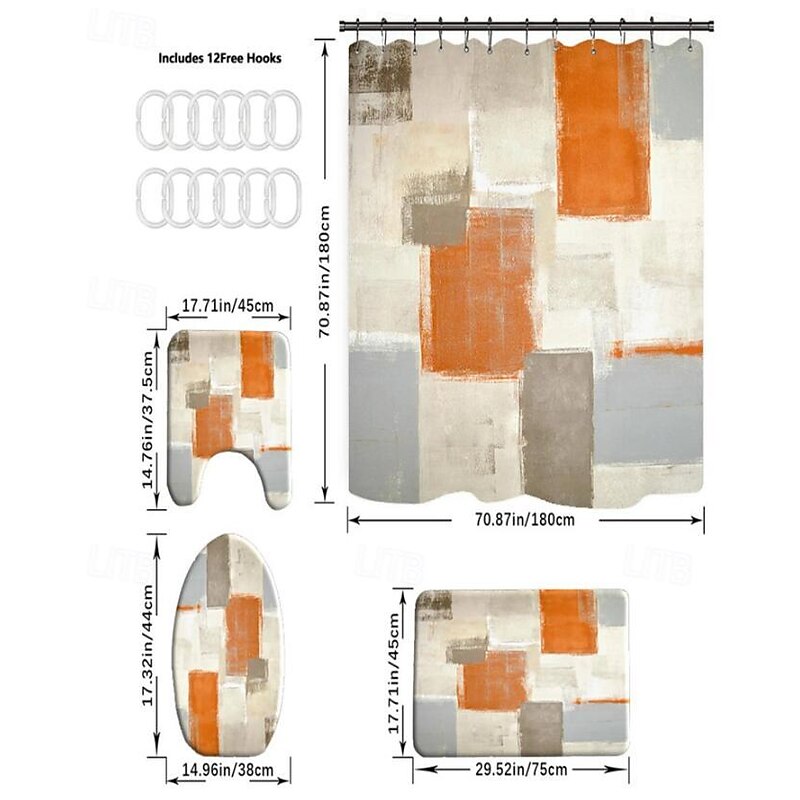 Shower Curtain 180cm 70",Watercolor Shower Curtain Set, Polyester Waterproof Shower Curtain, Non-slip Floor Mat, Toilet Seat, Bathroom Mat&12 Plastic Hooks, for Bathroom Bathtub Decoration 14