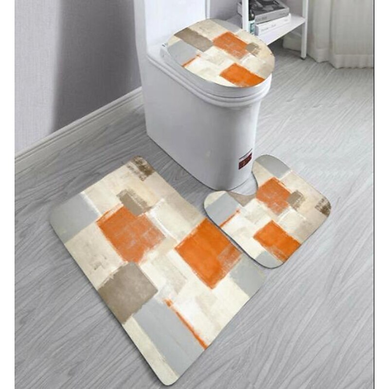Shower Curtain 180cm 70",Watercolor Shower Curtain Set, Polyester Waterproof Shower Curtain, Non-slip Floor Mat, Toilet Seat, Bathroom Mat&12 Plastic Hooks, for Bathroom Bathtub Decoration 19