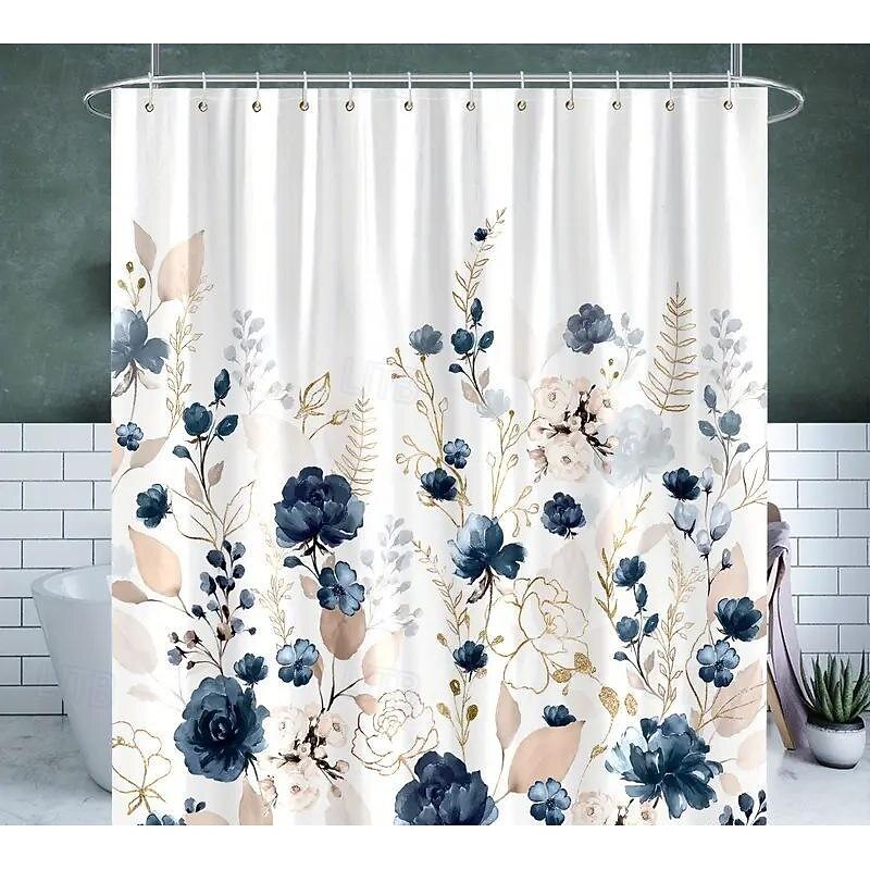 Shower Curtain 180cm 70",Watercolor Shower Curtain Set, Polyester Waterproof Shower Curtain, Non-slip Floor Mat, Toilet Seat, Bathroom Mat&12 Plastic Hooks, for Bathroom Bathtub Decoration 1