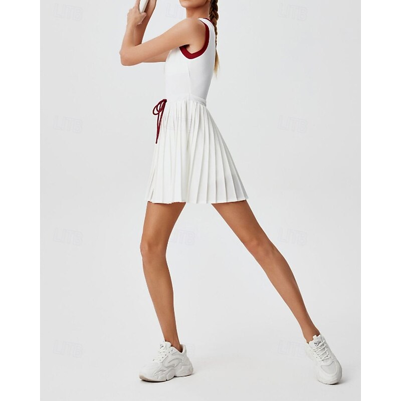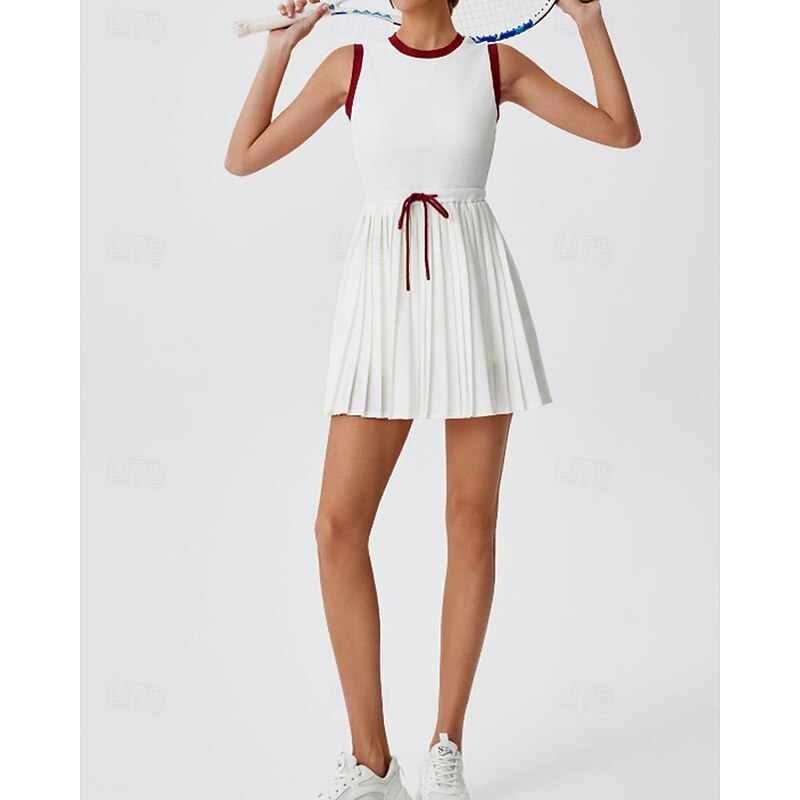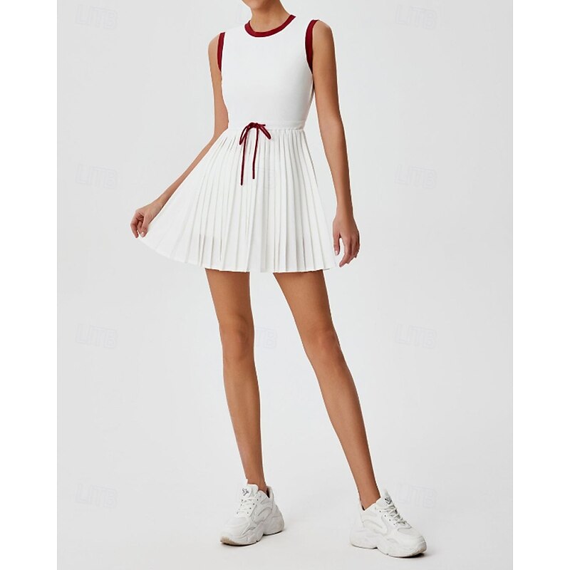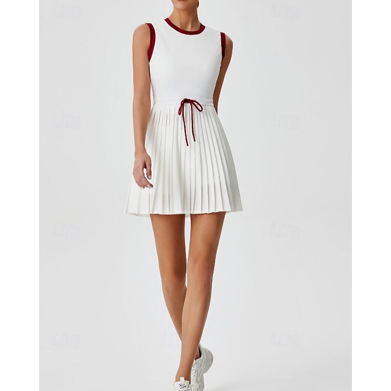 More information about Women's Patchwork Tennis Dress Sports Dress Sleeveless Drawstring Pleated Breathable Tennis Golf Pickleball Round Neck Tank Back Black Red Green Tennis Clothing