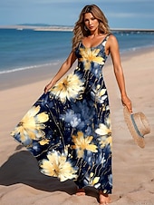 More information about Women's Maxi Dress A Line Dress Off The Shoulder Dress Vacation Casual Beach Party Regular Fit Floral Graphic Sleeveless Square Neck Scoop Neck Ink Blue Summer Spring