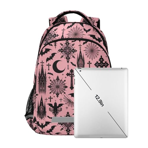 More information about MNSRUU Laptop Backpack with Chest Strap, Black Gothic Moon Spider Webs and Bats School Backpack, Travel Hiking Bag for Boys Girls Teen College Adult, Rucksack Knapsack