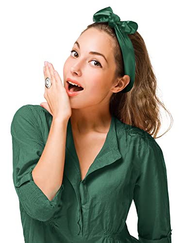 HOT ! SATINIOR Chiffon Scarf Handkerchief Retro Satin Ribbon Scarf for Women (23.6 x 23.6 Inches, Navy Green)