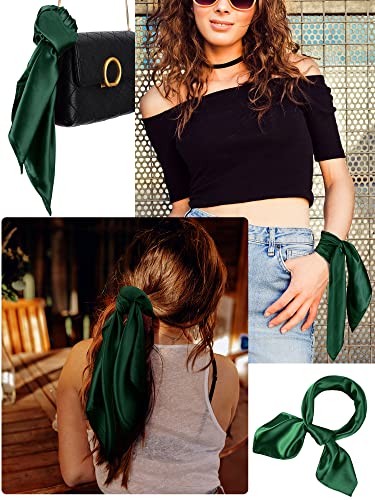 SATINIOR Chiffon Scarf Handkerchief Retro Satin Ribbon Scarf for Women (23.6 x 23.6 Inches, Navy Green) 5