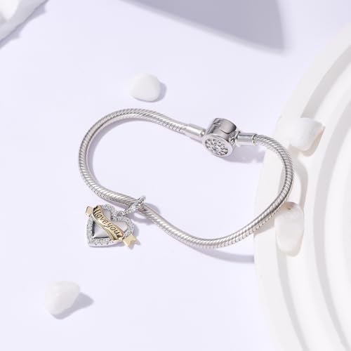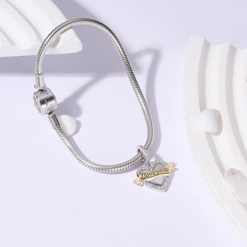 925 Sterling Silver Charms fit Pandora Charms Bracelet I Love You Mom Daughter Grandma Nana Wife Friends Heart Charm Bead for Christmas Mother's Day Valentines Gift 5