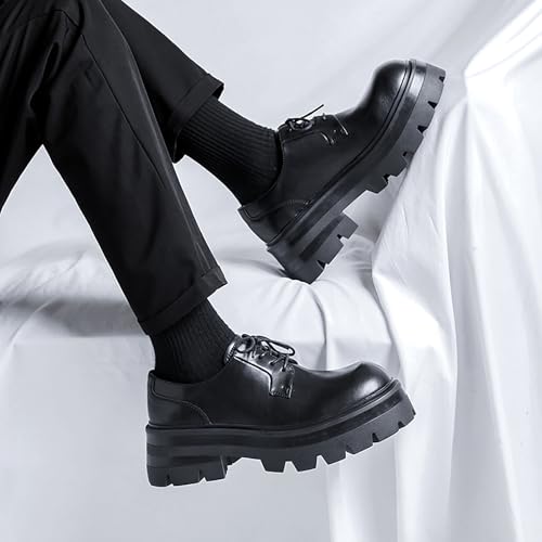 Men's Leather Lace-Up Platform Oxfords | Round Toe Chunky Heel Lug Sole Dress Shoes | Classic Business Office & Work Shoes 6