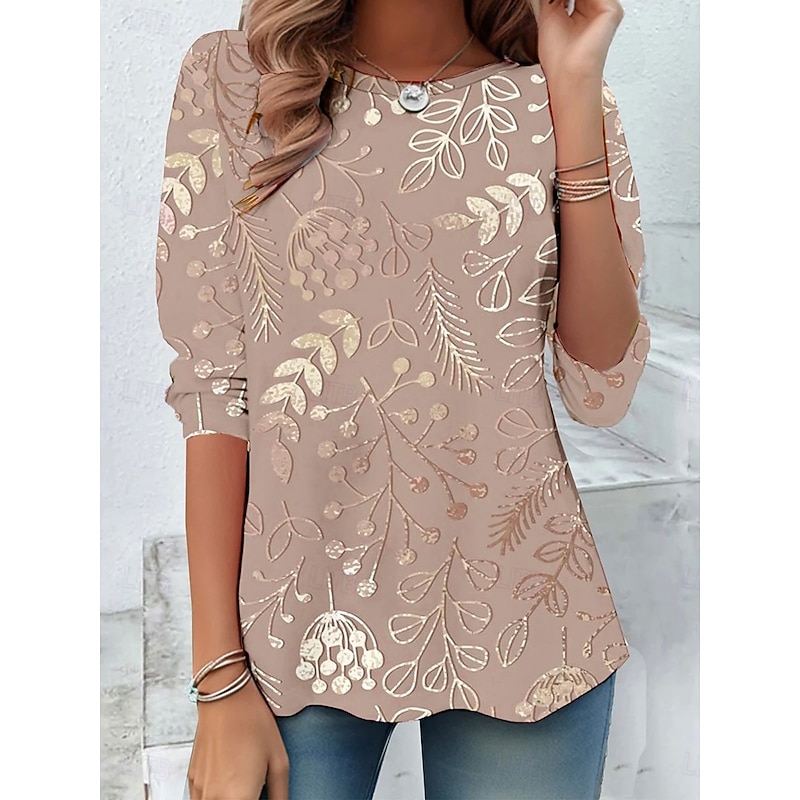 More information about Women's T shirt Long Sleeve Crew Neck Long Sleeve Tunic 3D Print Floral Graphic Casual Regular Tops Daily Print Pink Purple Green Khaki Fall Prefall