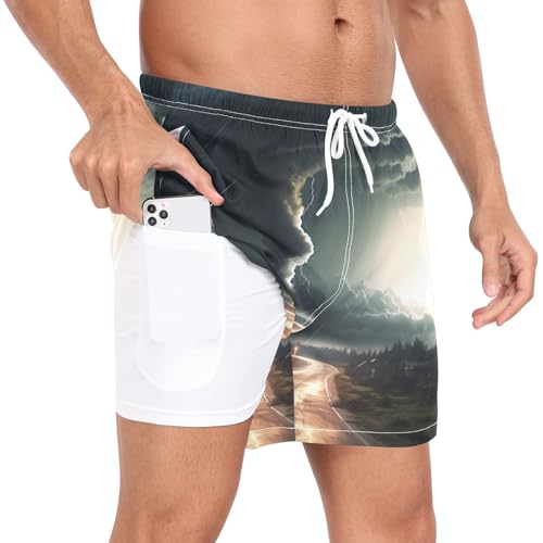 Black Tornado Mens Swim Trunks with Compression Liner 4.7" Inseam Quick Dry Lightweight Swimming Shorts#922 1