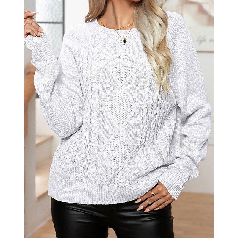 More information about Women's Pullover Casual Solid Color Chunky Crew Neck Knitted Long Sleeve Regular Tops Knit Daily Holiday Going out White Khaki Fall Winter