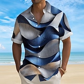 More information about Men's Gradient Waves Color-blocking Shirt Summer Shirt Button Up Shirt Short Sleeve Fashion Casual Outdoor Vacation Dailywear Summer Spring Turndown 3D Print Collared Shirts Front One Pocket Blue Gray