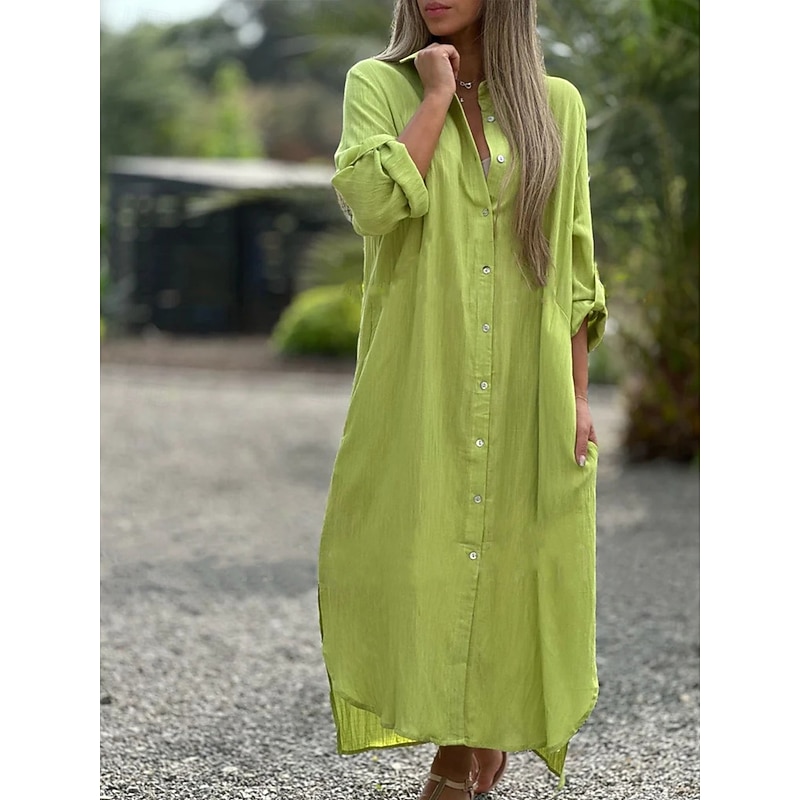 More information about Women's Normal Maxi Dress Linen-Inspired Dresses Shirt Dress Streetwear Street Date Regular Fit Solid Color Shirt Collar Black White Green Spring Fall
