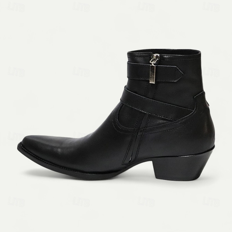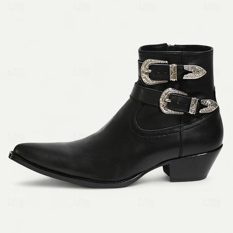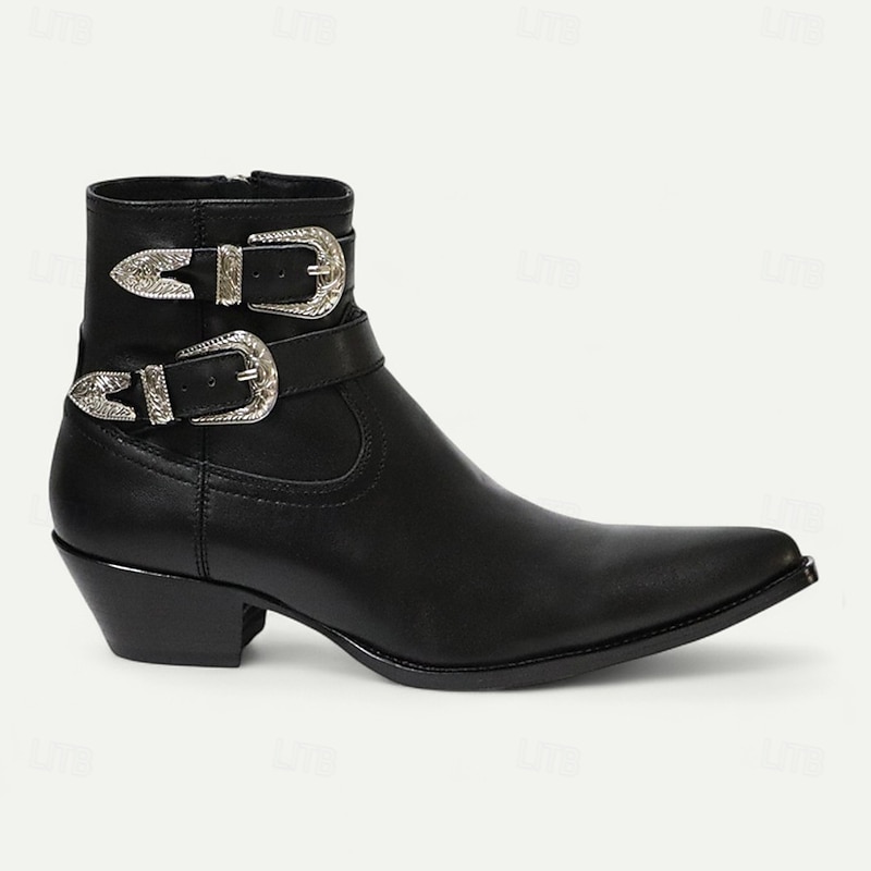 Men's Suede Leather Buckle Ankle Boots – Western Cowboy Style Retro Dress Boots for Fall Outfits & Daily Wear 1