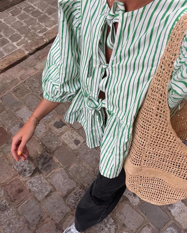 • Match: The tie front babydoll shirts perfect with your favorite leggings, jeans, pants, skirts, shorts, suitpants and so on. Striped lace up bow t shirts,lace up tie front top,lace up babydoll top,round collar half sleeve shirt, hollow out tie shirt, lapel doll collar clouse ,vintage chic streetwear.
