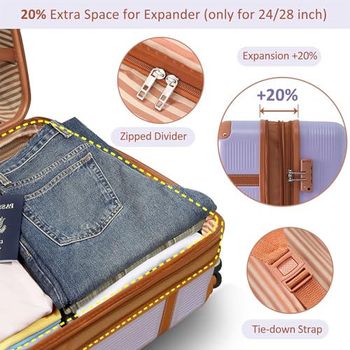 • Expansion function adds 20% extra space (only for 24-inch and 28-inch). The 24-inch and 28-inch luggage feature reinforced side handles and bumper feet for easy portability.
