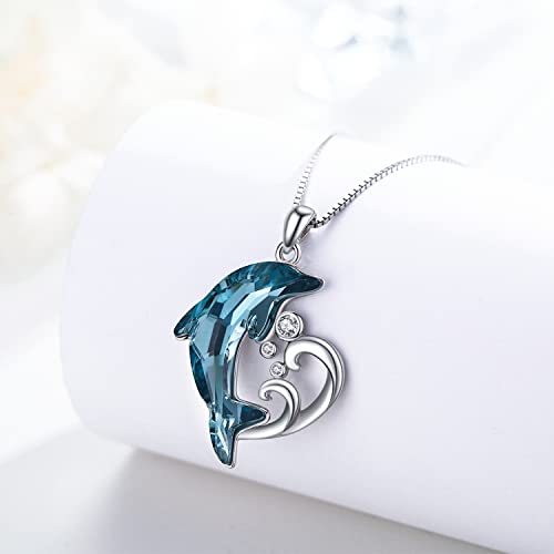 TwoAnts Sterling Silver Dolphin Pendant Necklace with Blue Crystal Dolphin Beach Themed Ocean Wave Jewelry for Women or Daughter's Birthday 2