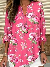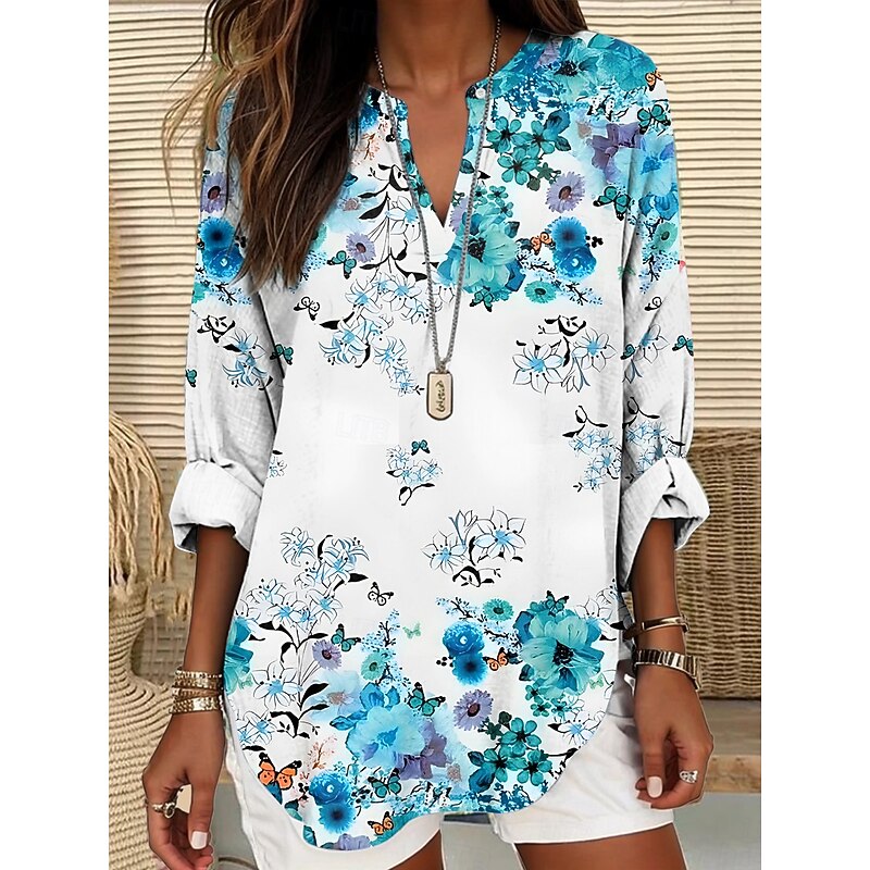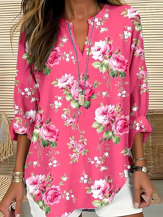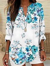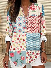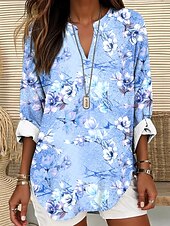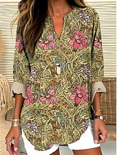 More information about Women's Blouse Tunic V Neck Long Sleeve Boho Casual Summer Tops Floral Graphic Vintage Tropical Regular Tops Daily Wear Print Pink Blue Sky Blue Khaki Beige