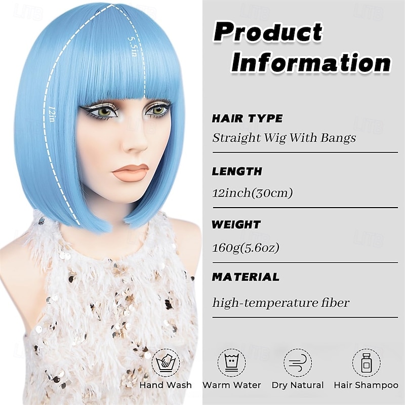 $16.49 - Blue Bob Wig With Bangs Short Straight Bob Bangs Wig 12Inch Synthetic Hair Natural Looking For Daily Party Use # Baby Blue 2025. Shop for cheap Party Wigs online? Buy at lightinthebox.com on sale today!